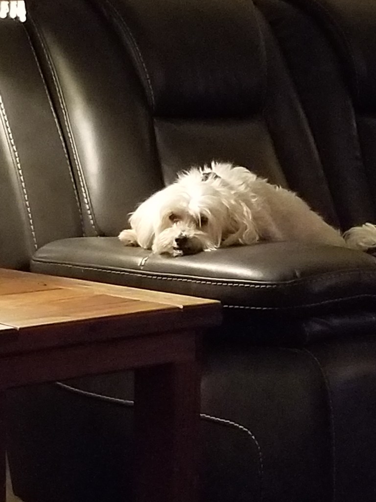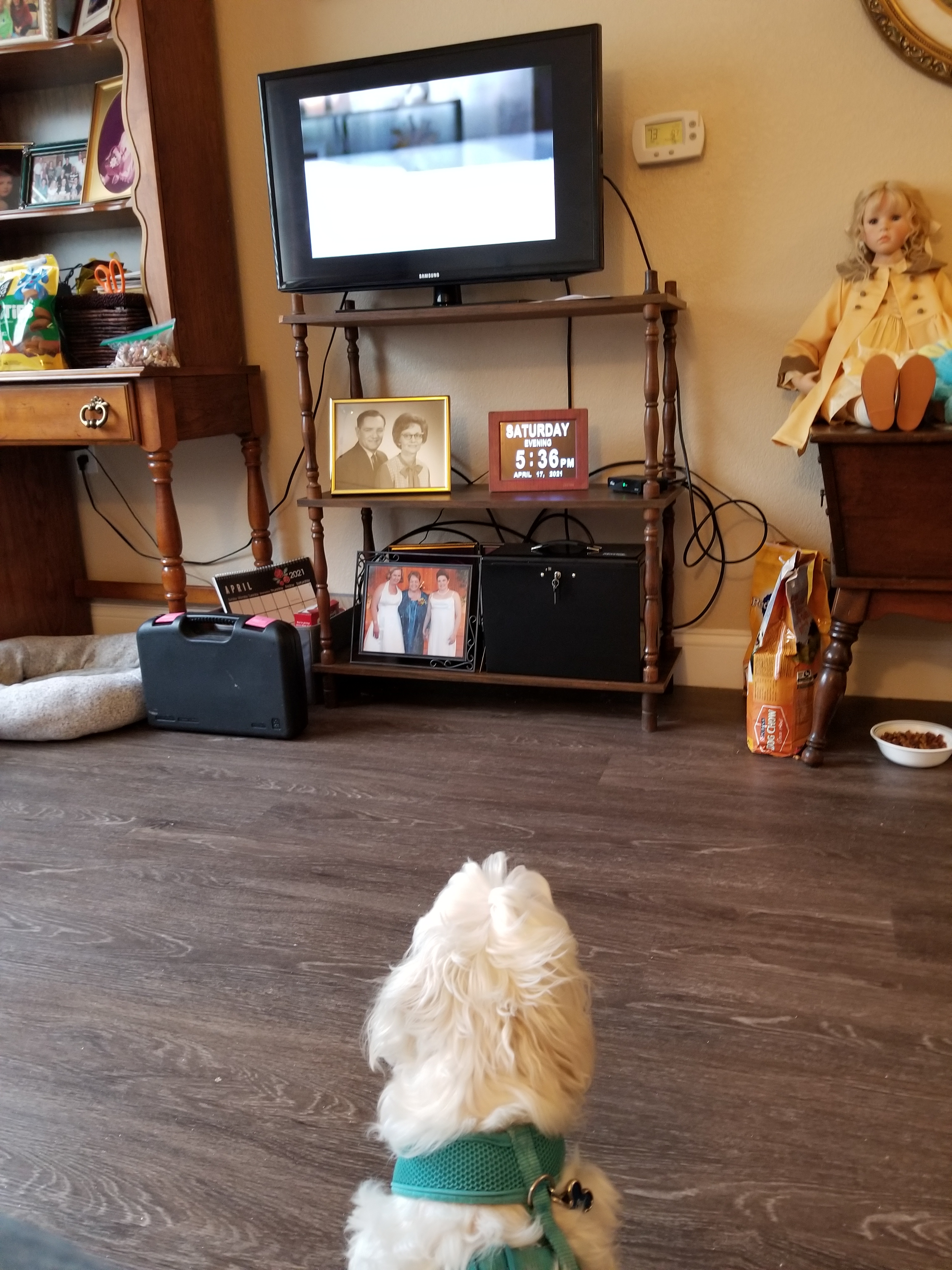 Mom’s dog Harper watching TV