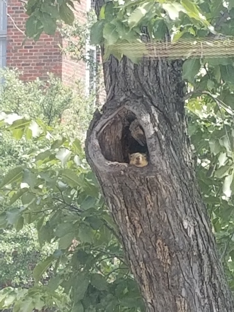 Jordyn, the office squirrel, resting on a hot day